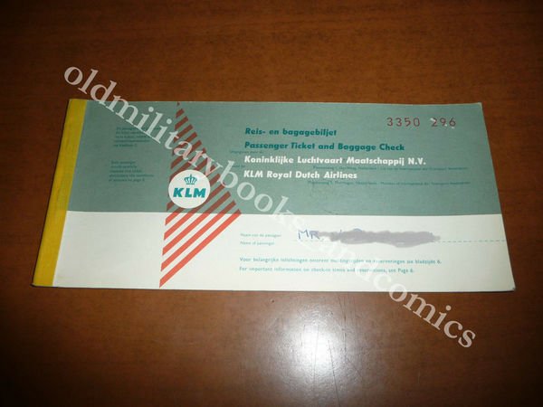 KLM ROYAL DUTCH AIRLINES 1961 VECCHIO BIGLIETTO AEREO VINTAGE AIRLINE TICKET