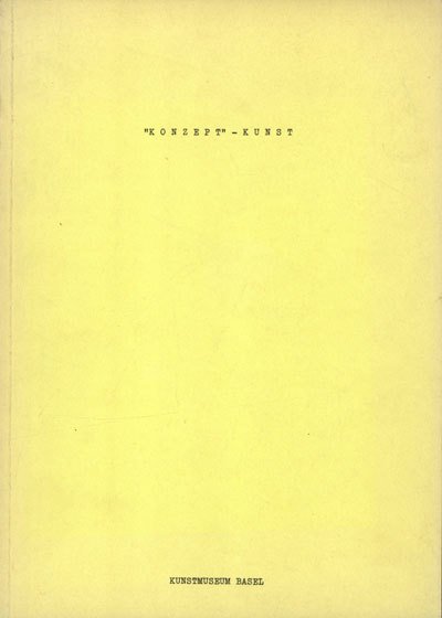 Exhibition catalogue published in conjunction with show held March 18 - April 23, 1972. Essays by Zdenek Felix and Klaus Honnef. Artists in the exhibition include Art & Language, John Baldessari, Robert Barry, Mel Bochner, Stanley Brouwn, Daniel Buren, Victor Burgin, Hanne Darboven, Jan Dibbets, Gilbert & George, Hans Haacke, Douglas Huebler, On Kawara, and Lawrence Weiner. Includes bibliography. Illustrated in black-and-white with one color plate. Text in English and German. — Testi: Felix Zdenek. F.to: 21x30; pagg. 68; BN; rileg. brossura . Editore: Kunsthalle, Basel, 1972.