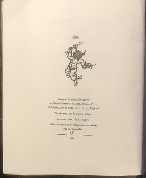 • Designes & printed letterpress by Edward Burrett. The colour film is by Lee Filters. A limited edition of 75 copies, this is number 65.