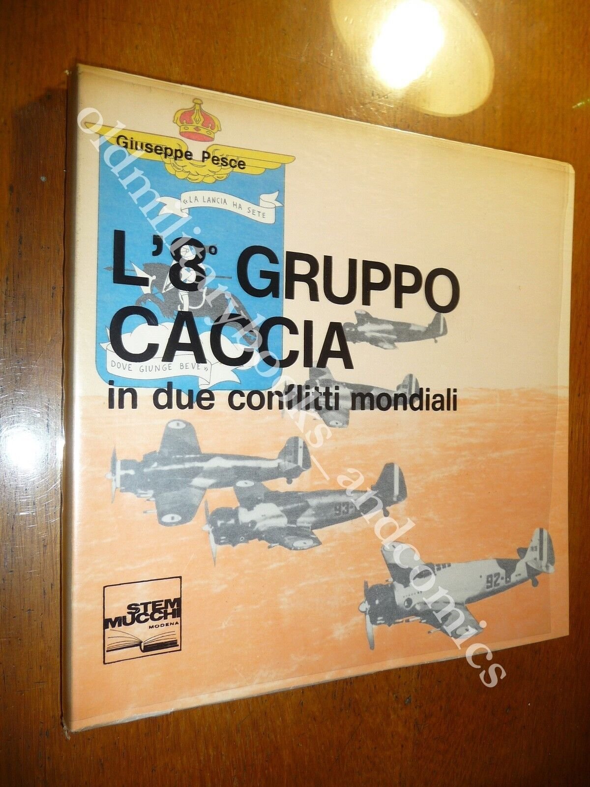 DESCRIZIONE: Stem Mucchi Modena 1974 br. ed. ill. con sovracc. in acetato pp. 144 numeros. ill. b/n n.t. 1 tav. a col. con i distintivi dell'8° Gruppo Caccia, alcune cartine. in 8° quadrotto.