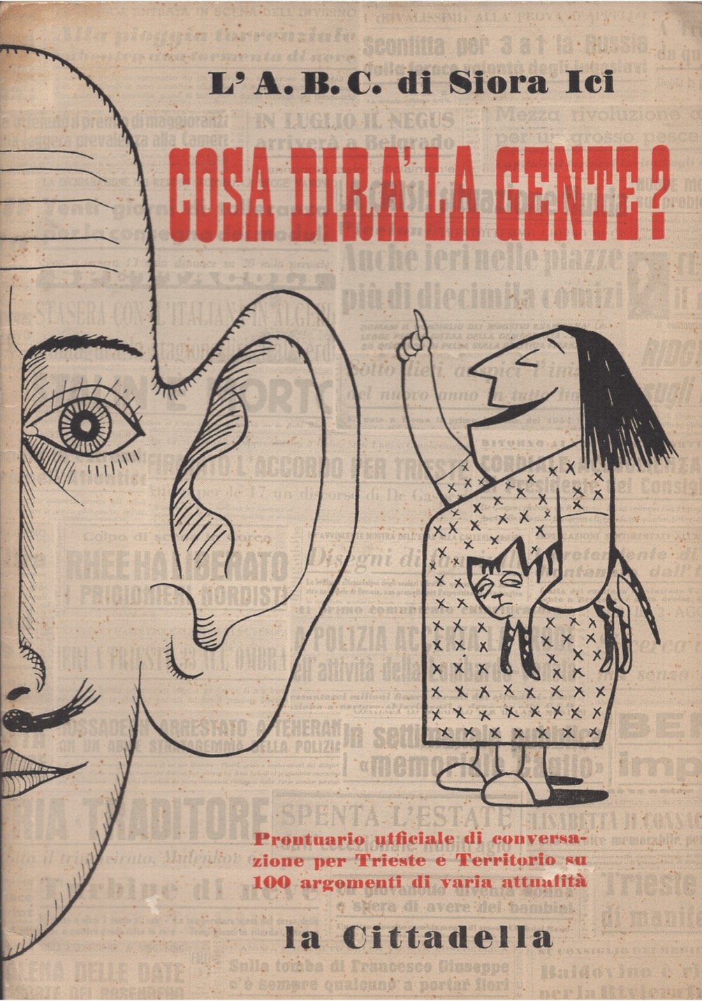 Prontuario ufficiale di conversazione per Trieste e Territorio su 100 argomenti di varia attualità. Illustrazioni di Ugo Guarino. Prontuario al modo del Borghese