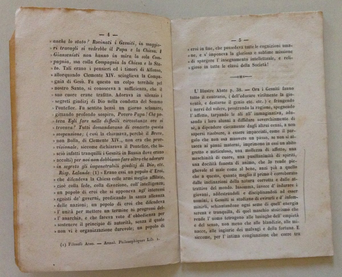 L'Abate Celebre V. Gioberti Ha Ragione Ristampa Prima Edizione Roma Modena 1847