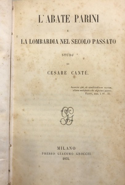 L'ABATE PARINI E LA LOMBARDIA NEL SECOLO PASSATO