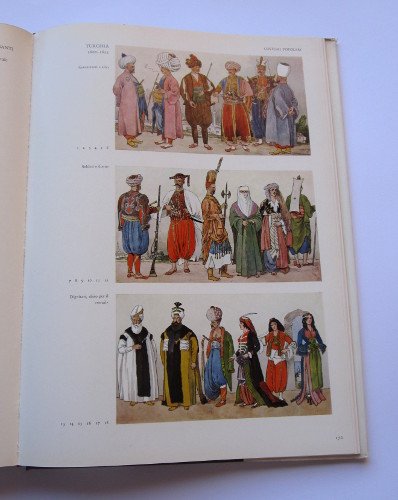 In 4to (cm 34 x25) legatura in tela, sovraccoperta con lievi segni del tempo pag. 80 seguite da 200 tav. a colori e b/n a piena pagina. Schede descrittive dei costumi di ogni tavola. -- Una rassegna di costumi di tutti i tempi e popoli dall'evo antico fino all'età moderna, compresi i costumi popolari europei e i costumi di Paesi extra-europei