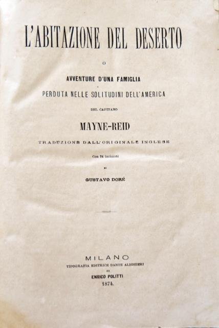 Traduzione dall'originale inglese. Con 24 incisioni di Gustavo Doré. Tipografia Editrice Dante Alighieri di Enrico Politti, Milano, 1874. In 8vo grande, pp. 204 con Indice + 2 relative alla pubblicità dello Stabilimento Tipo – Litografico di E. Politti in Milano, leg. edit. in modesto cartonato. Uniforme ingiallimento (più ingiallito l'angolo in alto a destra di certi fogli) ma molto buono.