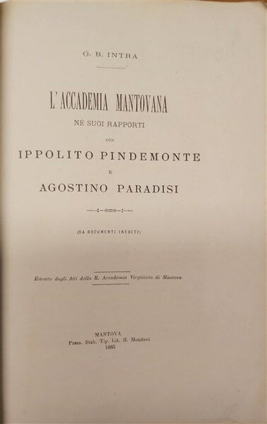 L'ACCADEMIA MANTOVANA nè suoi rapporti con Ippolito Pindemonte e Agostino Paradisi (da documenti inediti).