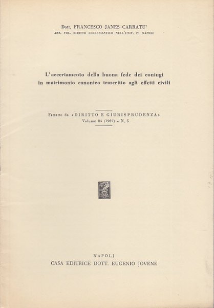 In-8 (Cm 23,2 x 16), pp. da 628 a 646, brossura editoriale. Estratto da Diritto e giurisprudenza. MOLTO BUONO