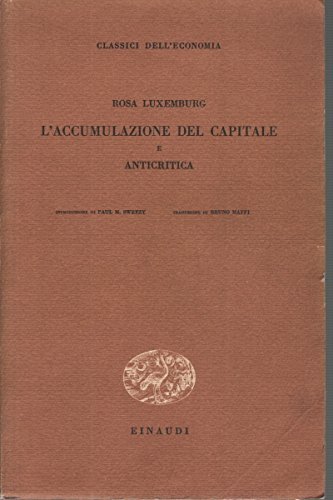 L'ACCUMULAZIONE DEL CAPITALE E ANTICRITICA. , EINAUDI 1960 italiano, Edizione Einaudi - Classici dell'economia n. 3 - del 10 agosto 1960 - in COPERTINA FLESSIBILE. Copertina con qualche lieve usura lungo i margini e su qualche spigolo ma nel complesso ben conservata. Pagine all'interno leggermente imbrunite fattore tempo ma volume in buonissime condizioni. Disponibilità immediata e spedizione con corriere tracciata.