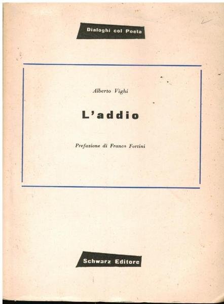 CM. 16X22, BROSS. EDIT. PP. 73. COLLANA "DIALOGHI CON IL POETA" N° XXXVI. PREFAZIONE DI F. FORTINI. PRIMA EDIZIONE A TIRATURA LIMITATA DI 500 ESEMPLARI (NS N°426). ECCELLENTE ESEMPLARE. VOLUME APPARTENUTO A LIBERO BIGIARETTI