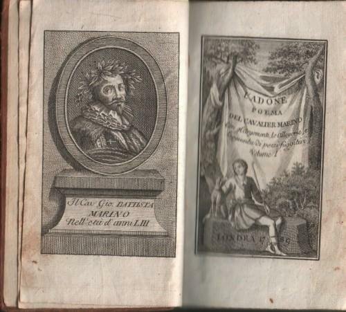 L’Adone. Poema del cavalier Marino. Con gl’Argomenti, le Allegorie, e l’aggiunta di pezzi fuggitivi, in 4 voll.