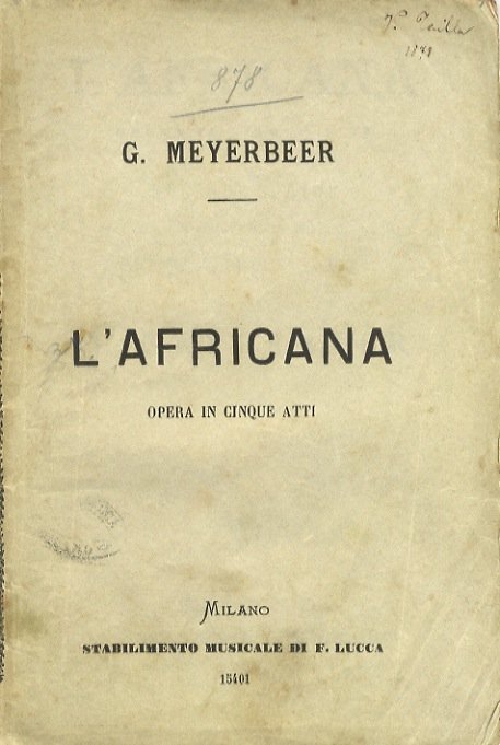 - Opera in cinque atti di Eugenio Scribe. Traduzione italiana di M. Marcello. Musica di G. Meyerbeer.