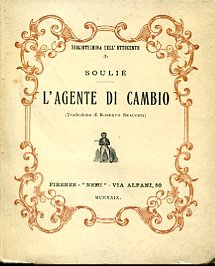 In-24°, pp. 46, (2), brossura editoriale con titolo entro bordura ornamentale rossa. Una tavola caricaturale impressa in rosso all'antiporta. Intonso. Ottimo stato. Prima traduzione italiana de L'Agent de change del Soulié. Satira della finanza e degli agenti di cambio nella Francia ottocentesca. Il Soulié (Foix, 1800-Bièvre, 1847), romanziere e autore drammatico, godette al suo tempo di immensa popolarità, paragonabile a quella di Balzac o di Eugène Sue, soprattutto per il romanzo Les Mémoires du Diable. La sua ingente produzione di feuilletons e di drammi è oggi quasi dimenticata. Bibliotechina dell'Ottocento, 4.