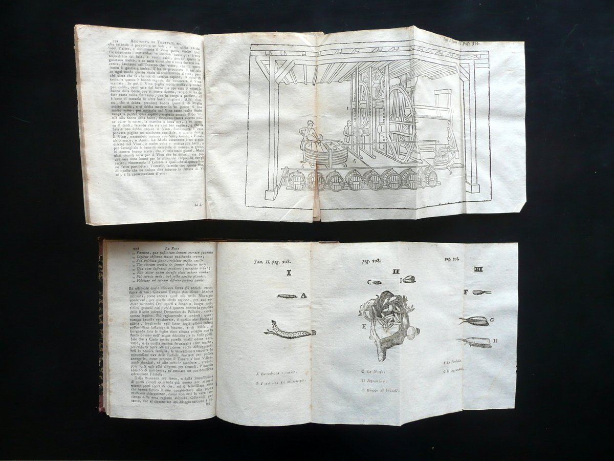 Settecentina, L'Agricoltore Sperimentato Ovvero regole generali sopra l'agricoltura di Cosimo Trinci Pistoiese Sesta edizione Tomo I - Tomo II (opera completa in due tomi) Presso Giuseppe Rossi qu. Bortolo, in Venezia 1796; cm 18x11,5; pp. XX-448 (tomo I); pp. XXII-296, con in totale 6 belle tavole incise in b/n fuori t., qualcuna rip. pi√π volte. Legatura d'epoca in mezza pelle con titolo annotato a mano entro etichetta al dorso; piatti marmorizzati. Opera completa in due tomi. Condizioni di conservazione Esemplare ben conservato con tracce d'uso e leggeri segni del tempo, coperte con alcuni piccoli / minimi strappetti ai margini, agli angoli dei piatti e alle cuffie, dorsi lievemente ingialliti e con minuscole macchiette. Interni buoni con leggere bruniture; alcune pagine con leggere gore che non compromettono la lettura del testo; una tavola con strappetto di qualche cm in corrispondenza di una piega conservativa. Opera completa in due tomi. SETT175.L15810 N P