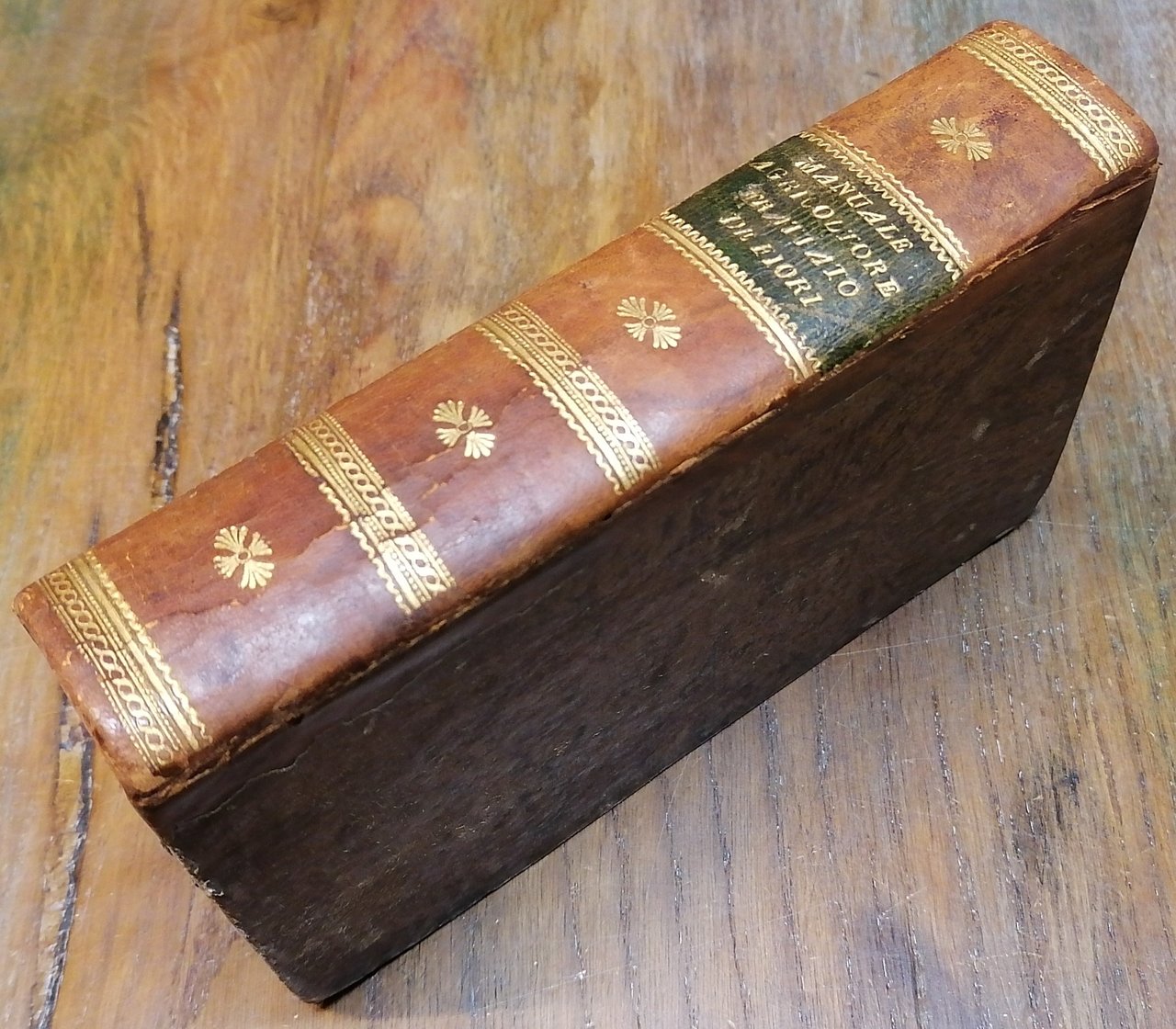 In 8° antico (cm 17 x 11), legatura in mezza pelle, al dorso titoli su tassello ed impressioni in oro. Cosimo Trinci "L'agricoltore sperimentato", Berno, 1733, pp. 14,(2),216, segue : Agostino Mandirola "Manuale de' giardinieri, diviso in tre Libri, che trattano del modo di coltivare, moltiplicare e conservare qualsivoglia sorte di Fiori. Aggiuntovi il Quarto Libro, che dimostra le Qualità, e le Virtù meravigliose Medicinali de' Fiori descritti in questo volume", Berno, 1731, con frontespizio proprio, pp. (8), 135,(1).