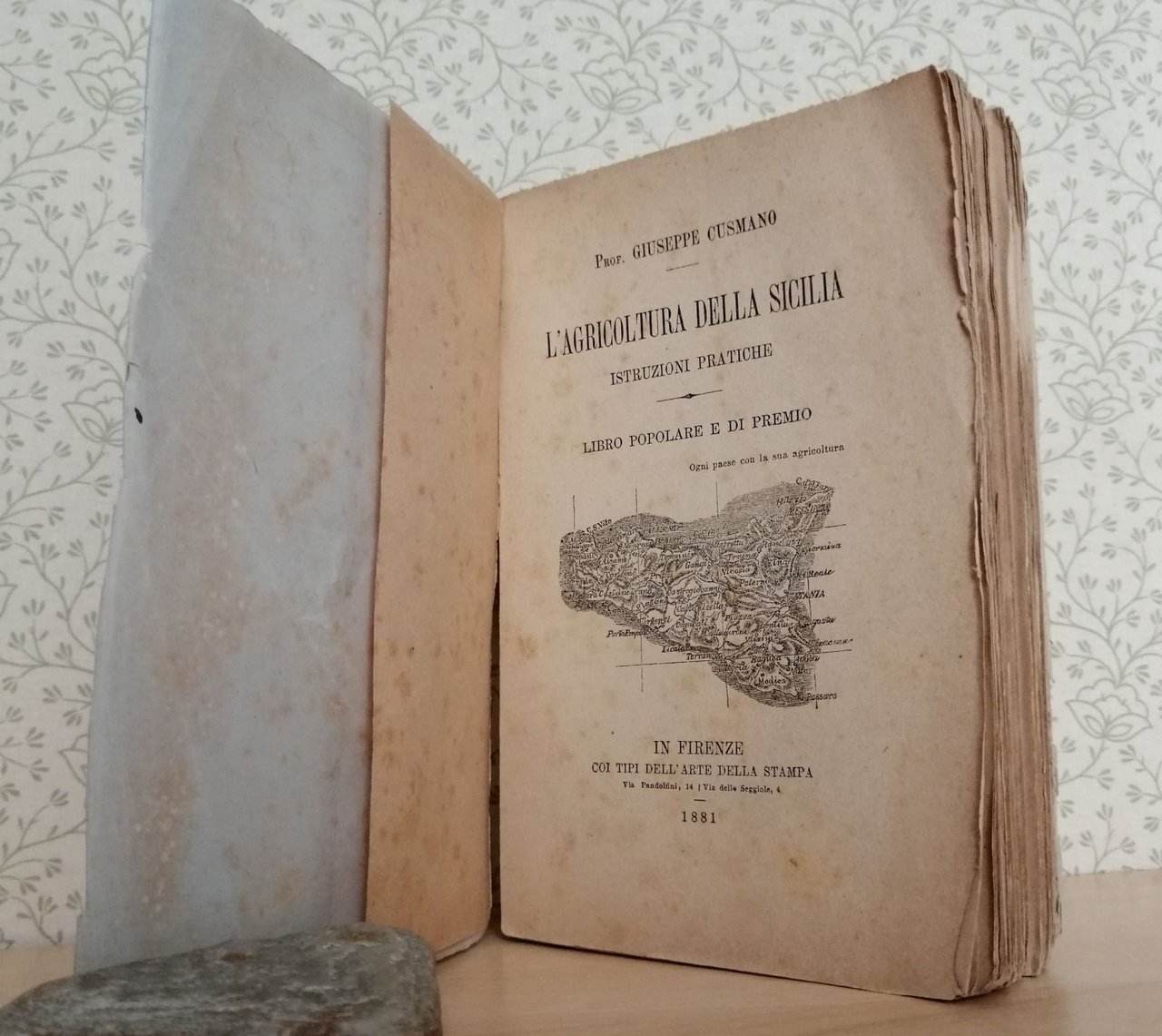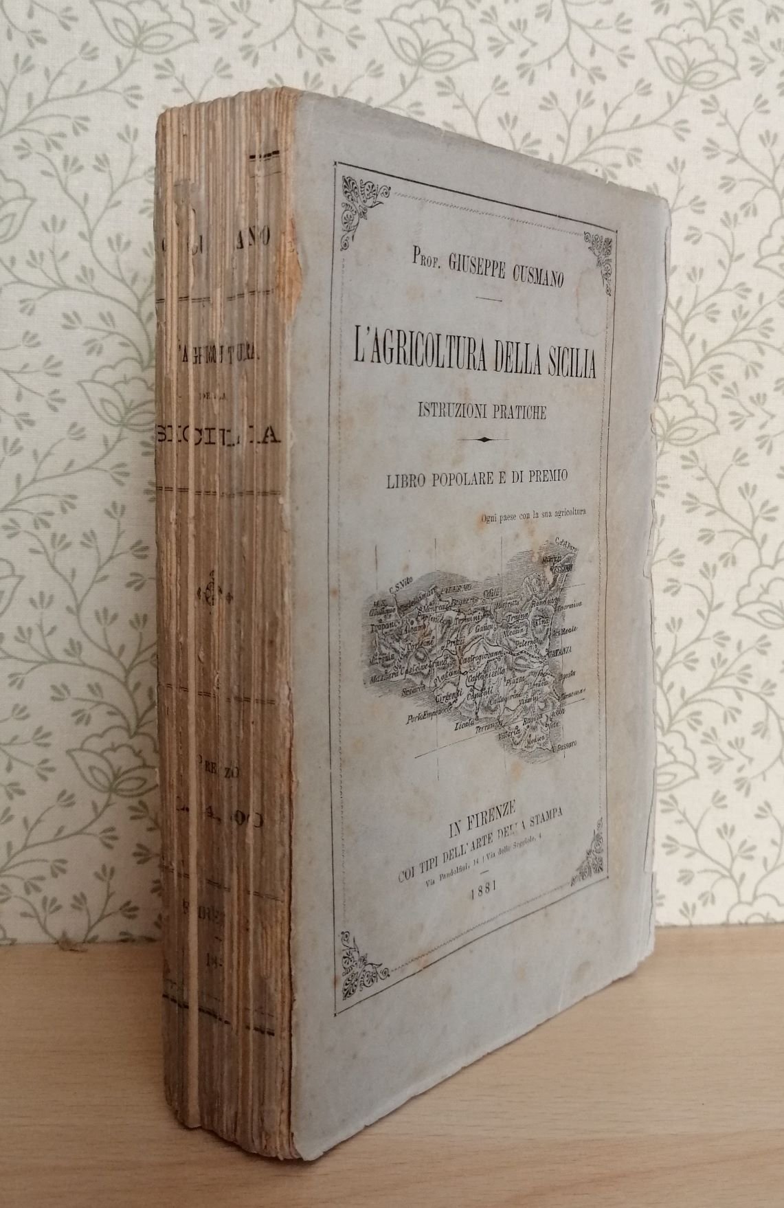 Volume in 8, brossura editoriale, titolo al piatto ed al dorso, frontespizio con vignetta incisa (carta della Sicilia), sommario, IV, 481 pp. comprensive di prefazione, avvertenze, occhiello, testo, indice ed errata. Un'accurata ed approfondita monografia con la quale l'autore propone la pi larga, sicura ed utile pratica agraria che possa aumentare e migliorare la produzione territoriale della Sicilia. Particolare ed interessante. Malgrado una leggera brunitura della carta e la legatura stanca, l'opera si presenta in buone condizioni ed sicuramente non comune.