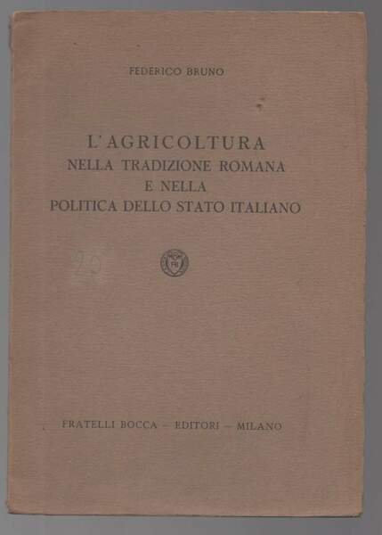 In 8, br., pp. 54. Segno a penna al piatto ant., piccoli strappi alla base e alla testa del dorso, nell'insieme buone condizioni.Luogo di pubblicazione MilanoEditore Fratelli BoccaAnno pubblicazione 1952Materia/Argomento Agricoltura, Roma, Storia ***Due to bureaucratic reasons, books dated over 70 years old cannot be immediately exported, please contact us before placing the order.***