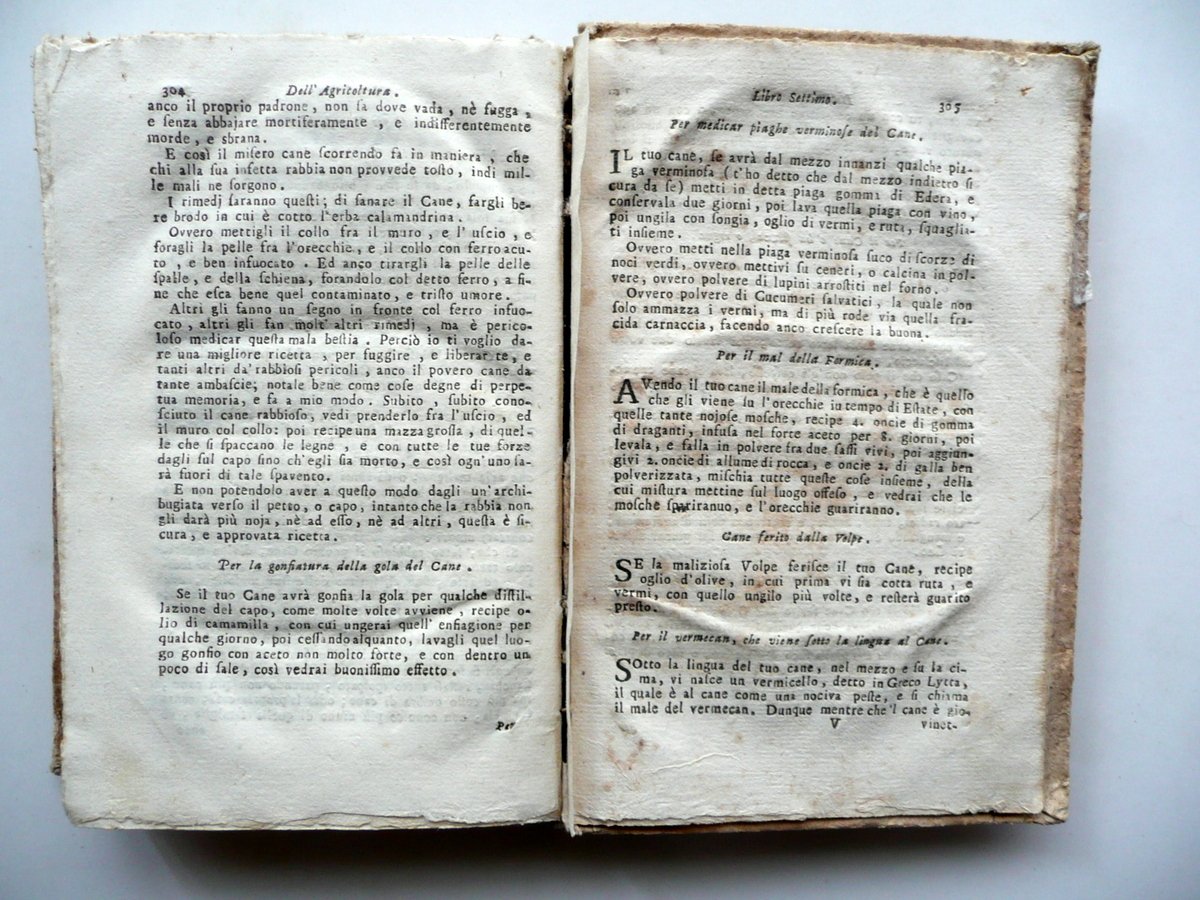 M. Africo Clemente, L'Agricoltura Sperimentata Ovvero Piano Generale di Agricoltura per uso dell'Italia Nel quale s'insegna l'unico metodo di preparare le terre per avere una raccolta in ogni classe che renda un cinquanta per cento più degli altri, e in particolare non solo per coltivare le viti, il formento, il riso, il lino, ma ancora per fare li vini; articolo importantissimo trascurato dalla maggior parte delle persone fino ad ora Opera nella quale si descrive la maniera di coltivare ogni sorta di alberi, e particolarmente li gelsi, ulivi, aranci, cedri, limoni, ec. Edizione arricchita di una descrizione di ciò che si deve fare ogni mese, e di due trattati particolari fondati sull'esperienza di trenta e più anni: il primo per allevare con prestezza li mori, e rendere le piante abbondanti di foglie: il secondo per coltivare, e preparare il tabacco, oltre un insegnamento per fare le pesche Aggiuntovi la maniera di fabbricare le case di villa, li granai, le colombaie, pozzi, ec.; il metodo di governare le galline, e conserva Presso Antonio Graziosi, in Venezia 1772, cm 18,5x12,5, pp. I-XVI; pp. 1-312 con tre figure in b/n fuori t. e un capolettera inciso all'inizio di ogni libro; piccola marca tipografica al frontespizio. Legatura d'epoca in tutto cartonato con titolo annotato a mano al dorso. Condizioni di conservazione Esemplare in buone condizioni con tracce d'uso e del tempo; coperta con alcune irregolarità, leggeri aloni e qualche lieve abrasione; dorso con alcuni strappetti la maggior parte restaurati per mezzo d'incollatura (vedi foto); piatto ant., contropiatti e risguardo ant. con vecchie annotazioni d'epoca; interni buoni con alcune piccole leggere buniture; margini con barbe. Ampio e ricchissimo trattato di agricoltura, che affronta numerosissimi temi e nozioni relativi sia alla coltivazione di terreni e piante, sia nozioni sull'allevamento di varie specie di animali, sia norme per l'edificazione di ambienti consoni allo stoccaggio dei prodotti, ricoveri e stalle per animali, ecc. SETT98.L9250 bis P