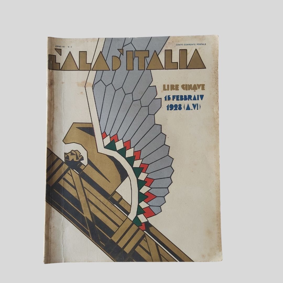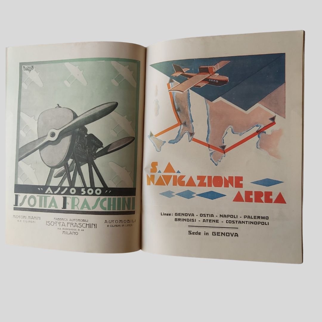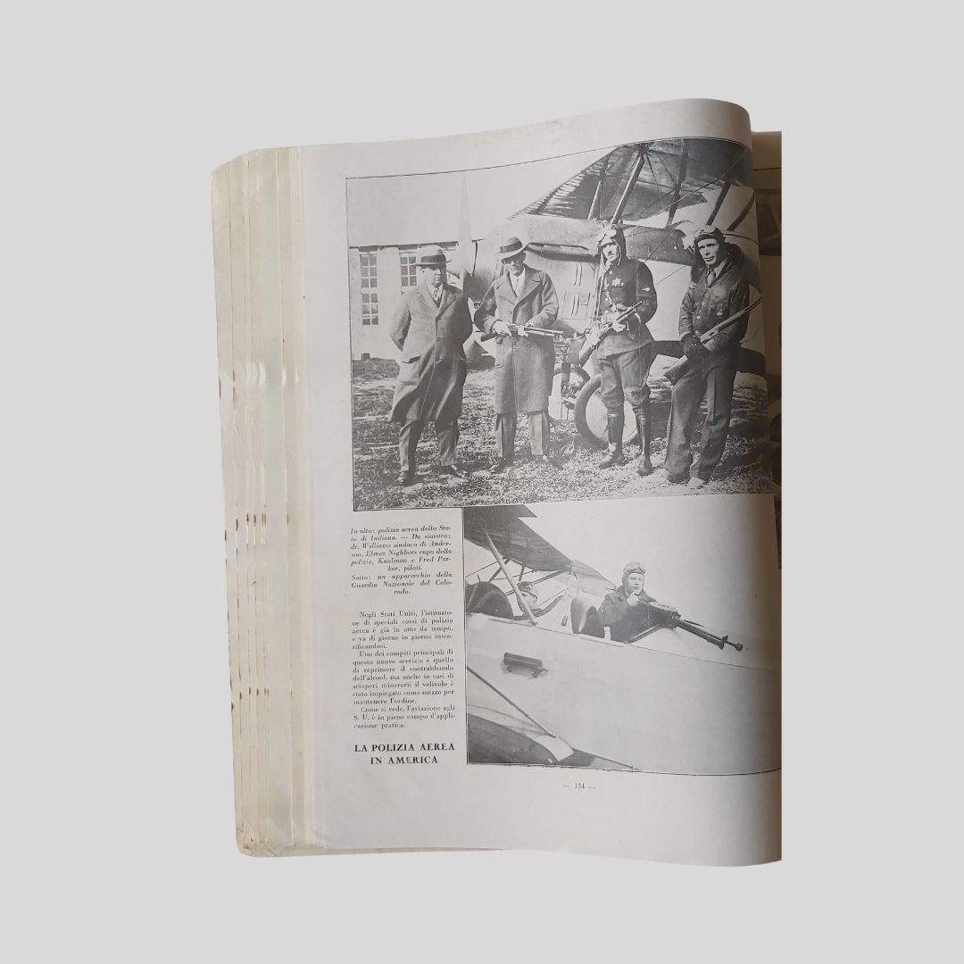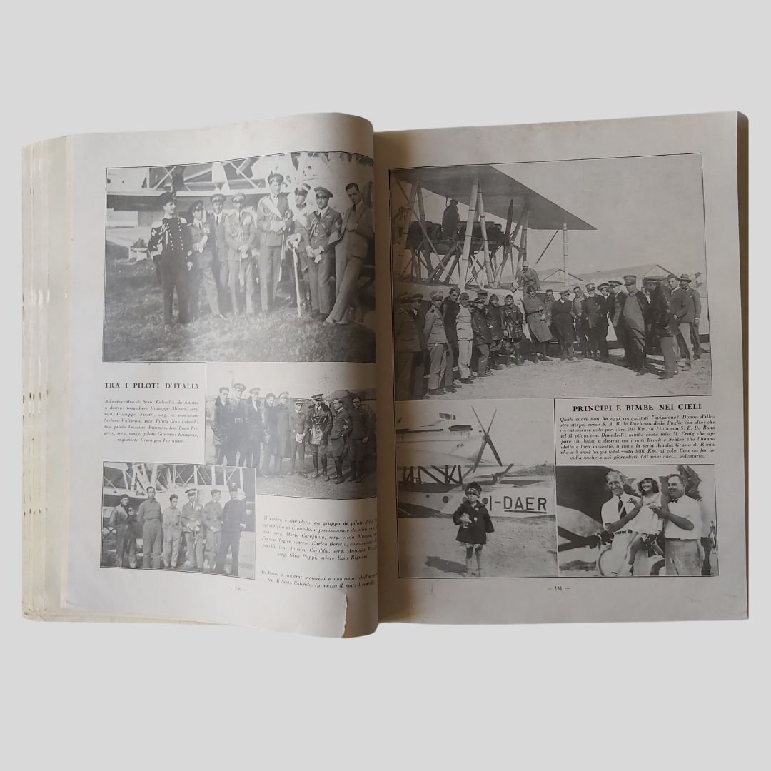 In-4° (cm 35x27), pp., a numerazione continua, XXIII-XXXI, 93-178, XXXIII-XLVIII. Anno VII, n. 2, 15 febbraio. Direttore: Attilio Longoni. Stampa su carta distinta e carta patinata. Con numerose ill. fotogr. e riproduz. in bianco e nero intercalate e a p. pagina e inserzioni pubblicitarie a p. pagina a colori su carta distinta. Le pagine a numerazione romana contengono anch'esse inserzioni pubblicitarie, su carta distinta. La maggior parte delle tavole sono dell'illustratore Gino Negrin. Copertina e lettering futurista con fascio littorio. Difetto alla terza di copertina parzialmente staccata al dorso, con lievi tracce di vecchia umidità al margine superiore di alcune delle pagine stampate su carta patinata, alcune fioriture. Raro e ricercato.