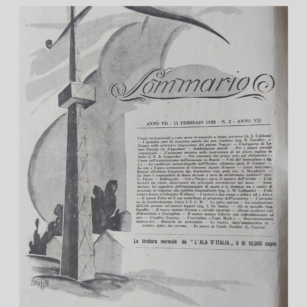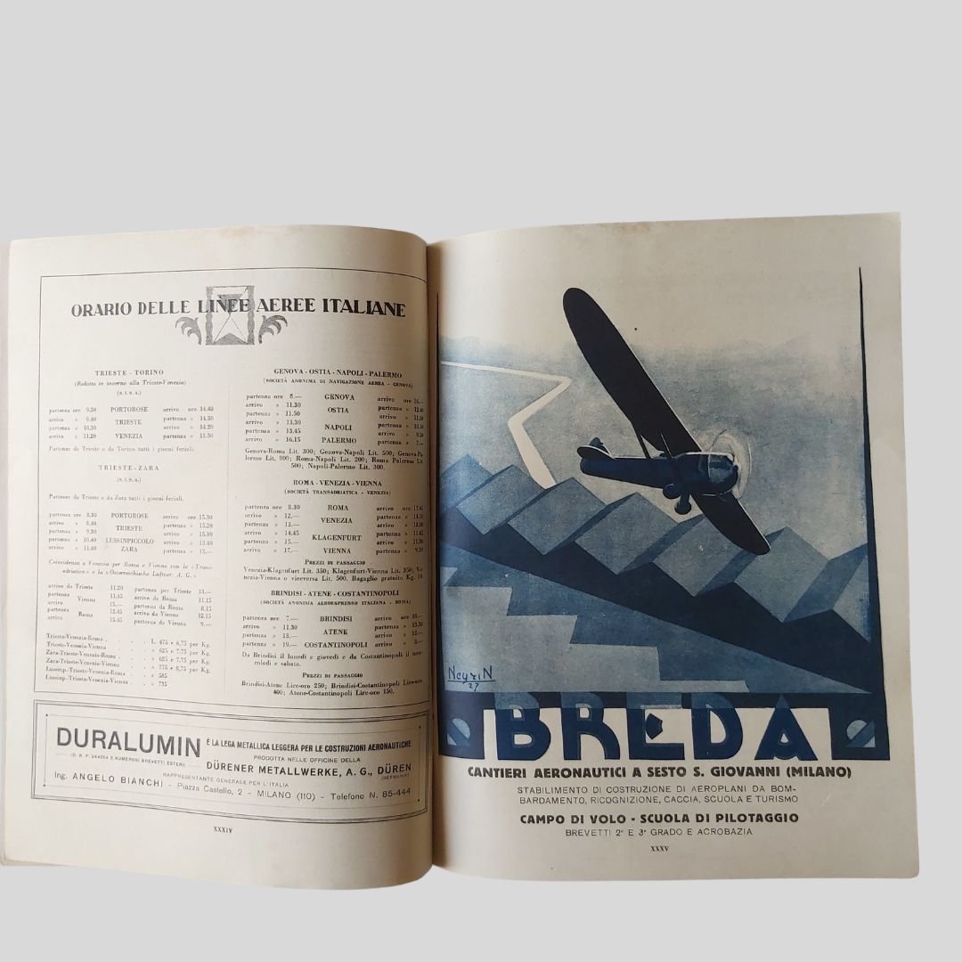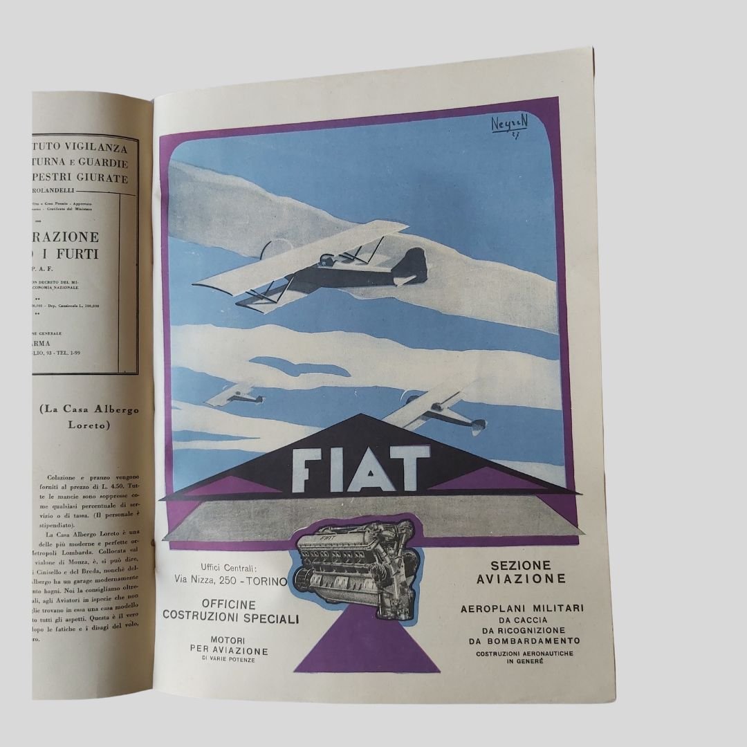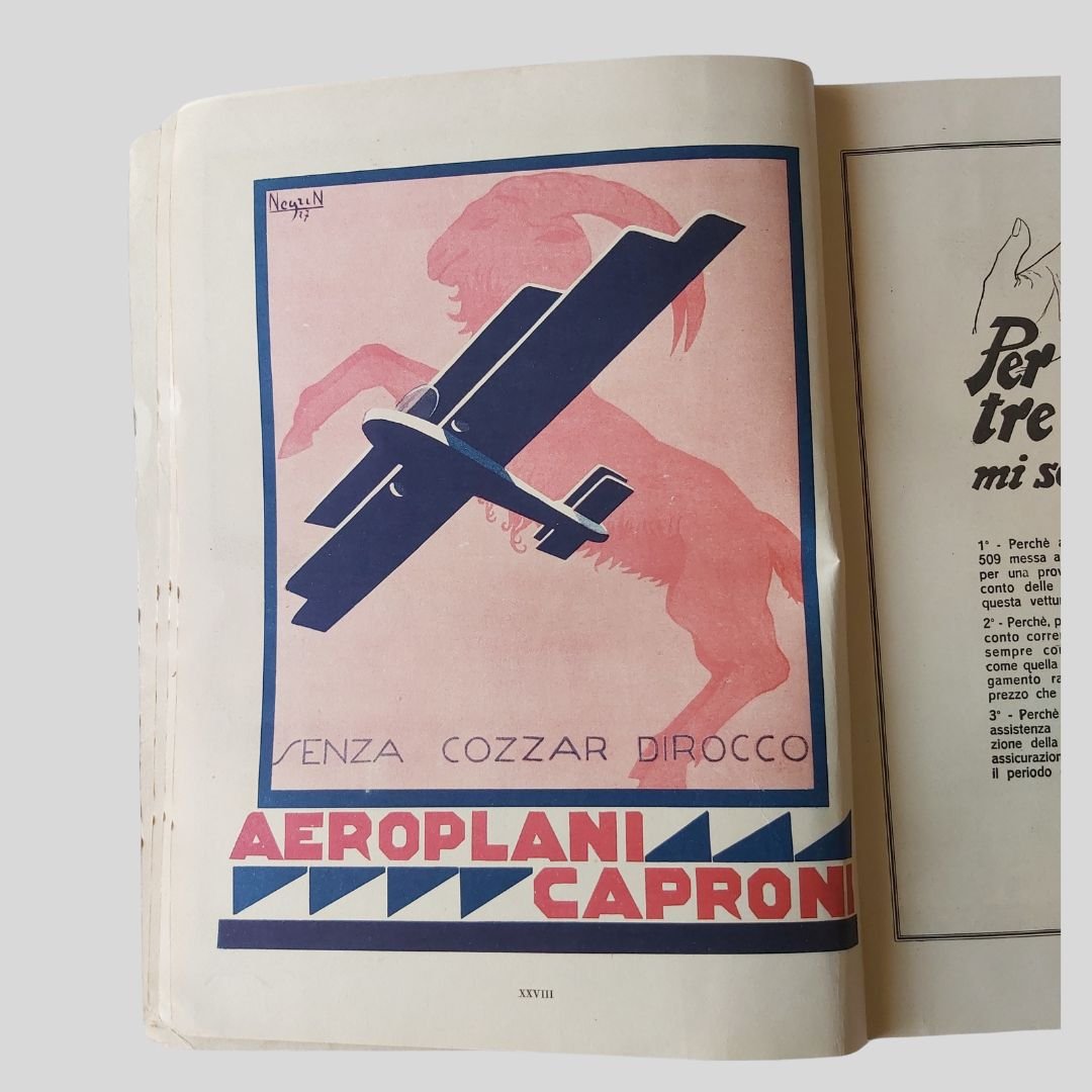 In-4° (cm 35x27), pp., a numerazione continua, XXIII-XXXI, 93-178, XXXIII-XLVIII. Anno VII, n. 2, 15 febbraio. Direttore: Attilio Longoni. Stampa su carta distinta e carta patinata. Con numerose ill. fotogr. e riproduz. in bianco e nero intercalate e a p. pagina e inserzioni pubblicitarie a p. pagina a colori su carta distinta. Le pagine a numerazione romana contengono anch'esse inserzioni pubblicitarie, su carta distinta. La maggior parte delle tavole sono dell'illustratore Gino Negrin. Copertina e lettering futurista con fascio littorio. Difetto alla terza di copertina parzialmente staccata al dorso, con lievi tracce di vecchia umidità al margine superiore di alcune delle pagine stampate su carta patinata, alcune fioriture. Raro e ricercato.