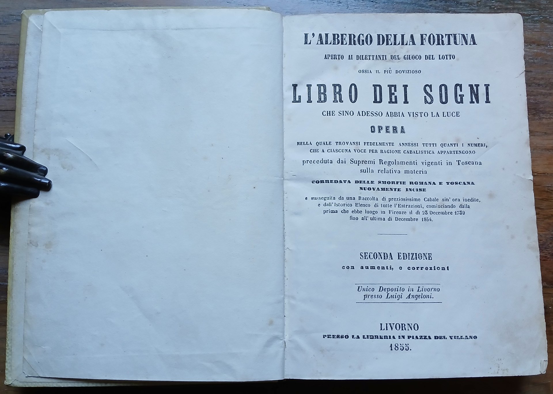 L'albergo della fortuna aperto ai dilettanti del giuoco del Lotto ossia il più dovizioso Libro dei Sogni che sino adesso abbia visto la luce. Opera nella quale trovansi fedelmente annessi tutti quanti i numeri, che a ciascuna voce per ragione cabalistica appartengono, preceduta dai Supremi Regolamenti vigenti in Toscana sulla relativa materia, corredata dalle smorfie romana e toscana nuovamente incise.