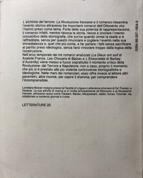 Soggetti: Critica letteraria, Linguistica, Filologia, Lingua, Letteratura francese, Attivismo politico, Gruppi e movimenti rivoluzionari, Rivoluzioni, Sollevazioni, Rivolte, Romanzi storici francesi, Ottocento, Classici, Rivoluzione francese, Terrore, Rievocazioni storiche, Ideologie politiche, Ambientazione storica, Anatole France, Le Dieux ont soif, Les Chouans, L'Ensorcelée, Gli Sciuani, Honoré de Balzac, Jules Barbey d'Aurevilly, Napoleone Bonaparte, Società, Simbolismo, Trascendenza, Politica, Immaginario, Giustizia, Cittadinanza, Convenzione, Fede, Potere, Comando, Anarchia, Verità, Menzogna, Continuità, Necessità, Orgoglio, Pregiudizio, Classi sociali, Borghesia, Scontro, Cambiamento, Libri Vintage, Fuori catalogo, Analisi, Commedia umana, Scene di vita militare, Vandea, Bretagna, Ribelli, La stregata, Normandia, Gli dèi hanno sete, Evariste Gamelin, Brotteaux des Ilettes, Eroi, Odio, Terrorismo, Bouvard, Pécuchet, Finzione, Literary Criticism, Linguistics, Philology, Language, French Literature, Political Activism, Revolutionary Groups and Movements, Revolutions, Rising, Revolts, French Historical Novels, 19th Century, Classics, French Revolution, Terror, Historical Re-enactments, Political Ideologies, Historical Setting, Society, Symbolism, Transcendence, Politics, Imaginary, Justice, Citizenship, Convention, Faith, Power, Command, Anarchy, Truth, Lie, Continuity, Need, Pride, Prejudice, Social Classes, Middle Class, Clash, Change, Out of print Books, Analysis, Human comedy, Scenes of military life, Vendée, Brittany, Rebels, The bewitched, Normandy, The gods are thirsty, Heroes, Hate, Terrorism, Fiction