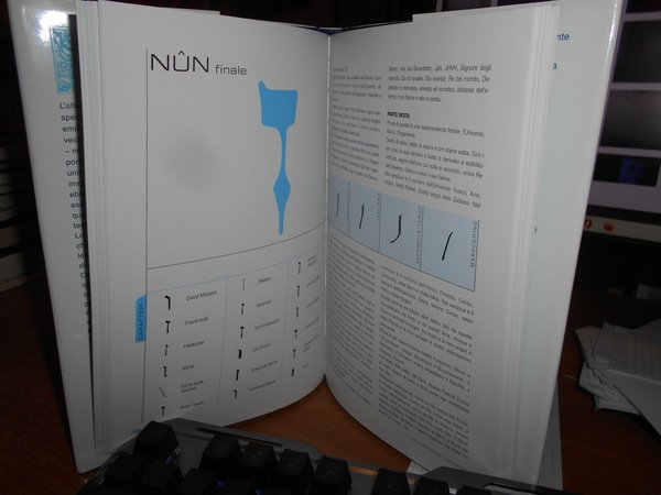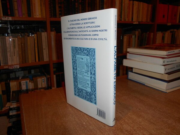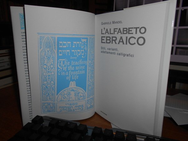 MANDEL GABRIELE. Milano, Mondadori, 2000. L' Alfabeto Ebraico. Stili, varianti, adattamenti calligrafici. In-8°, similpelle bleu con sovracopertina. 143 pp. con numerose figure in nero e azzurro nel testo. Come nuovo. Uff. stanz. TV. mob. nostro sinistra basso