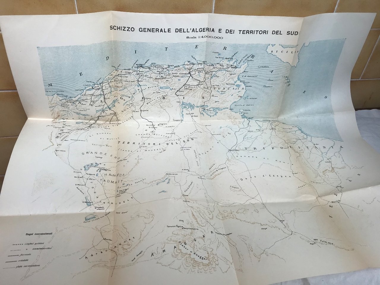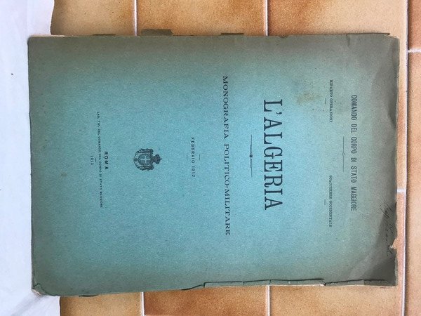 Volume in 8, brossura editoriale, titolo al piatto, occhiello, frontespizio, 92 pp., carta ripiegata dell'Algeria cm. 55 X 50. Piatto posteriore slegato, per il resto in buono stato.