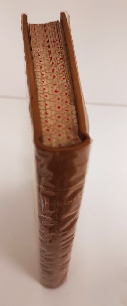 cm 17x12; pp. 142, più tre tavole a colori applicate su cartoncino; elegante legatura in tutta pelle con fregi e decorazioni a colori in rilievo (vedi foto). Sguardie marmorizzate e bellissimi tagli con filigrana in oro. Contiene 10 racconti di autori vari (L. Serristori, G. Dalla Valle, Felice Venosta ed altri). Qualche rara e lieve fioritura sparsa Molto buono (Very Good) .