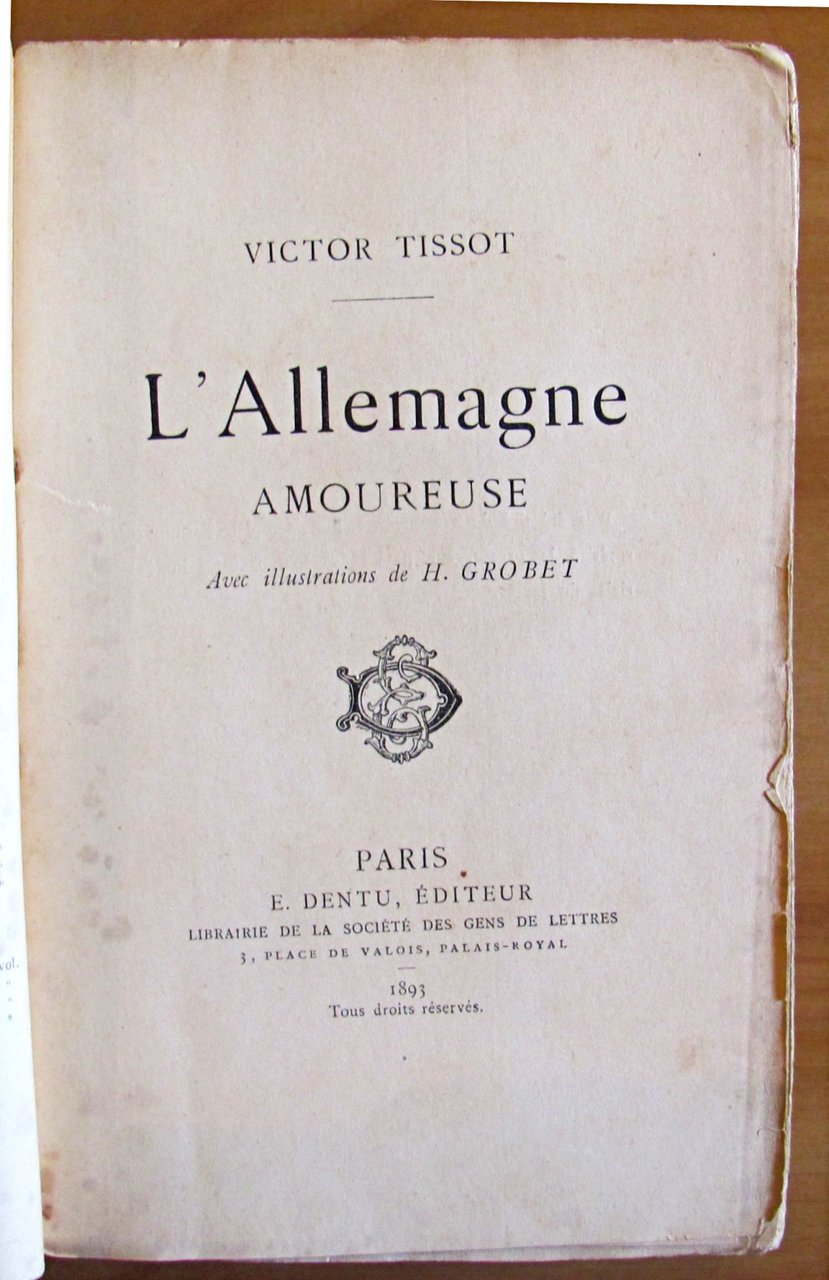 Illustrazioni in b/n n.t., anche a piena pagina, di H. Grobet. Ed. Dentu - Paris, 1893. Brossura editoriale con qualche brunitura al dorso. Come da foto, piccolo taglio al margine interno del frontespizio. 12x19; pp.440. RARO e in BUONISSIMO STATO , Molto buono (Very Good)