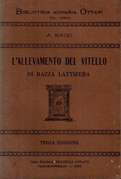 "L'allevamento del vitello di razza lattifera", terza edizione 1923, pp. 95, formato 13 x 19.