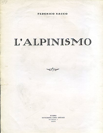 In-8°, pp. 7, brossura editoriale. Un'illustrazione in b.n. n.t. Estratto dalla rivista mensile 'Alpinismo'.