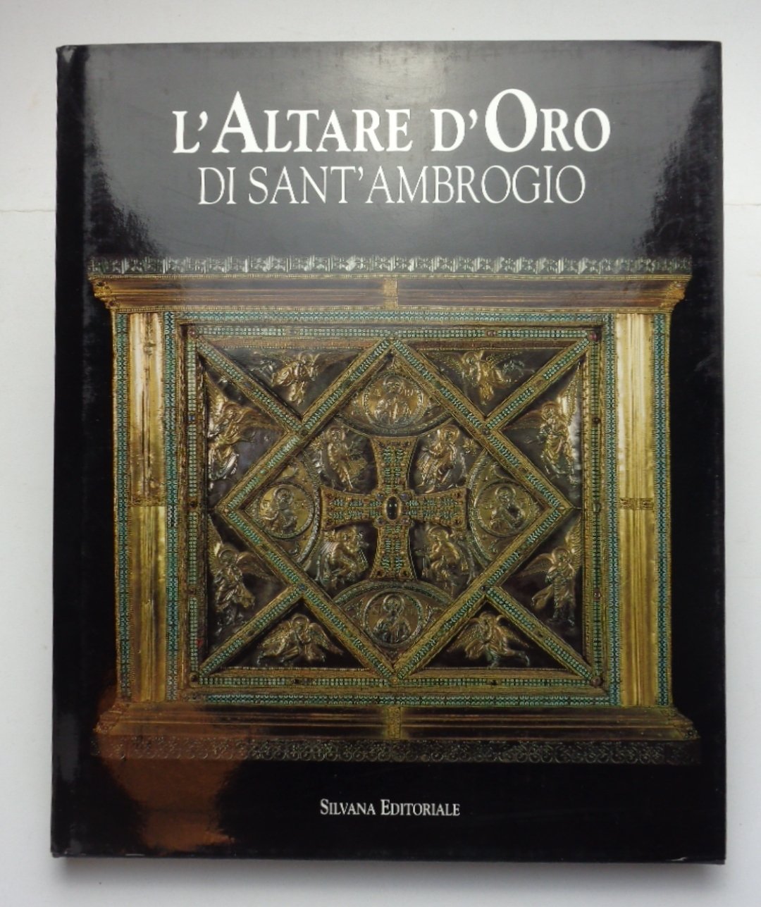 Un volume (25x30,5 cm) di 207 pagine, con 110 illustrazioni a colori e 110 in bn. Tela editoriale con sovracoperta illustrata; custodia in cartoncino. Ottime condizioni. "Il centro fisico e spirituale della basilica è l'altare d'oro, donato dall'arcivescovo Angilberto II (824-859), capolavoro assoluto dell'oreficeria tardocarolingia. Eseguito con la tecnica dello sbalzo, impreziosito da bordure di smalti, perle e pietre preziose, è opera del magister faber Vuolvinio".