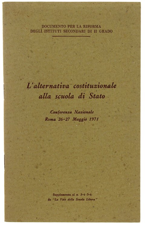 L'ALTERNATIVA COSTITUZIONALE ALLA SCUOLA DI STATO. Conferenza Nazionale Roma 26-27 Maggio 1971.
