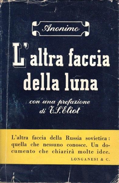 L'altra faccia della luna, edizione aprile 1948, pp. 311, formato 12 x 18,5.<BR>Copertina morbida di colore grigio con titoli in nero al piatto anteriore e sul dorso. Sovraccoperta di colore blu con titoli in bianco. Prefazione di T. S. Eliot. Volume facente parte della collana "Il Mondo Nuovo". Traduzione di Luciana Mancinelli. <BR>Leggeri segni del tempo alla sovraccoperta. Nel complesso condizioni molto buone.