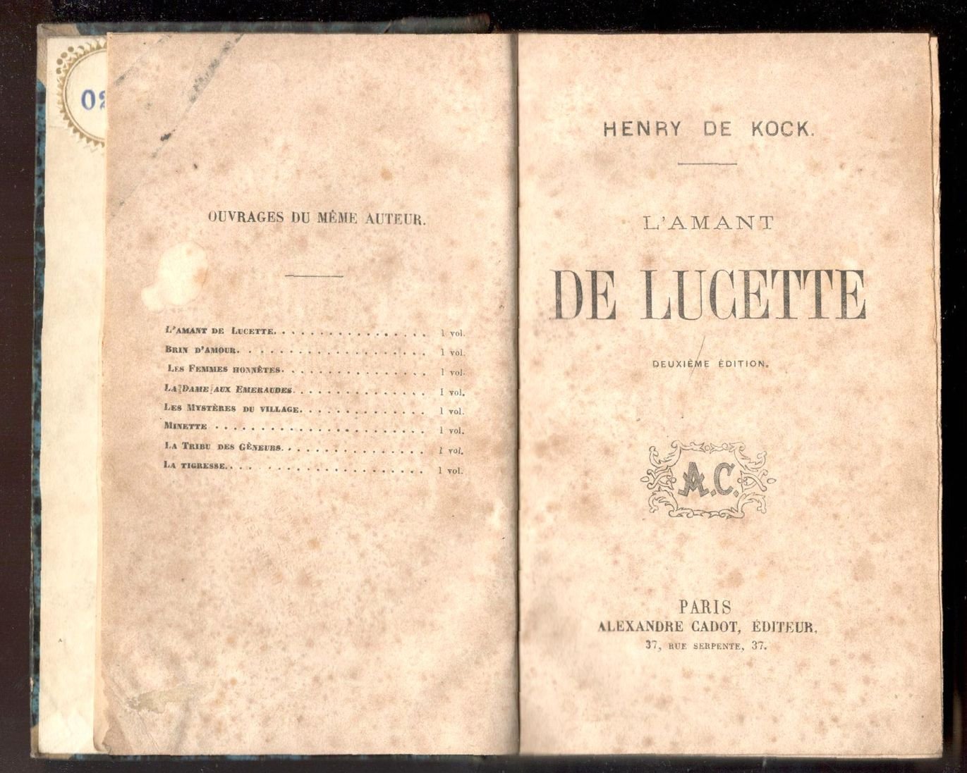 L'amant de Lucette. Deuxième édition