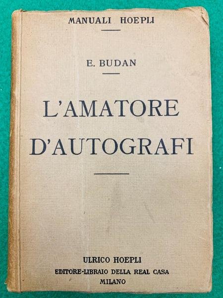 In 16°; XVI, (2), 425, (3) pp. Legatura editoriale in cartoncino (leggero segno di piega al piatto anteriore). Prima edizione in buone-ottime condizioni di conservazione di questa importante opera dedicata agli "amatori" d'autografi.