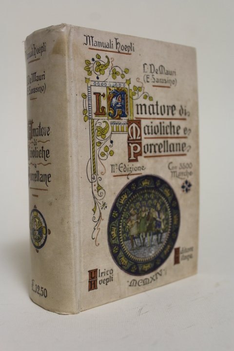 In 16°(150x105); pagg. XIII, 843. Tela editoriale policroma decorata, tagli a spruzzo. Interessante manuale sulla storia di ceramica, maiolica e porcellana; riporta notizie tecniche ed artistiche, marche disposte in ordine alfabetico, etc. Ottimo esemplare.