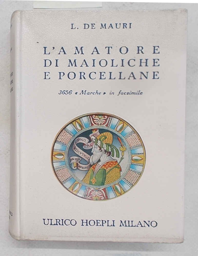 In 16° (cm. 15,5 x 10,5); pagg. 535; con 3656 riproduzioni di "marche" di maioliche n.t.; cartonatura origin. illustr. a coll. VG. ** Manuale Hoepli. Ristampa parziale della terza edizione. "Notizie storiche ed artistiche su tutte le fabbriche di maioliche e porcellane. 3656 "marche" disposte in ordine alfabetico."