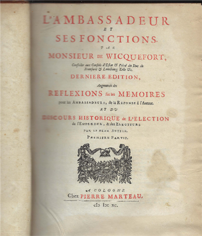 3 Tomi In Due Volumi Pubblicati Rispettivamente Nel 1675 E Nel 1690 Seconda Edizione Aumentata Dalle " Reflexions Sur Les Memoires Pour Les Ambassadeurs " E Da " Discours Sur L'election De L' Empereur " . L'edizione Più Completa Fine Ex Libris In Antiporta