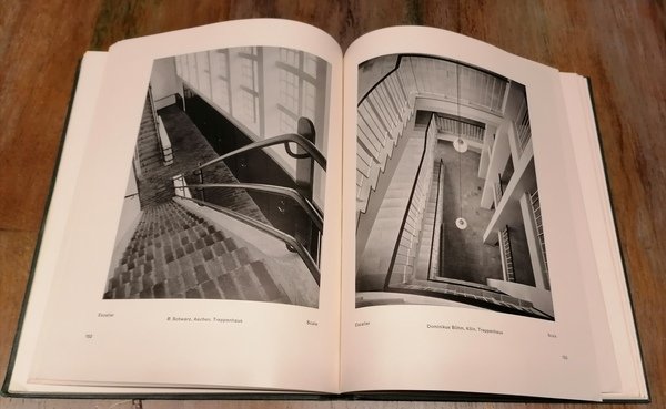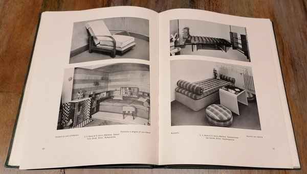 (Architettura - Movimento Moderno - Razionalismo - Design - Arredamento) In 4°, legatura editoriale in piena tela verde, al dorso titoli e filetti in oro su tassello in similpelle rossa, al piatto anteriore titoli dorati su tassello in similpelle rossa entro cornice in oro, guardie in carta martellata color sabbia, pp. VII,(4) + pp. 208 su carta patinata con 292 illustrazioni fotografiche in b/n (Vestiboli ed atri - Stanze di soggiorno - Gabinetti di lavoro, librerie, studii - Salotti e stanze da musica - Salotto per Signora, spogliatoi e camere da letto - Stanze da pranzo, giardini d'inverno - Bar e ristoranti - Negozi ed esposizioni - Scale ed atrii - Sale degli sportelli, biblioteche, atrii d'albergo - Teatri e sale di conferenze - Ambienti destinati al culto - Costruzioni razionaliste). In fine elenchi di artisti e fotografi. Traduzione dal tedesco di Geza De Francovich. Alcune lievi, irrilevanti toccature marginali alla legatura ma esemplare ben conservato.