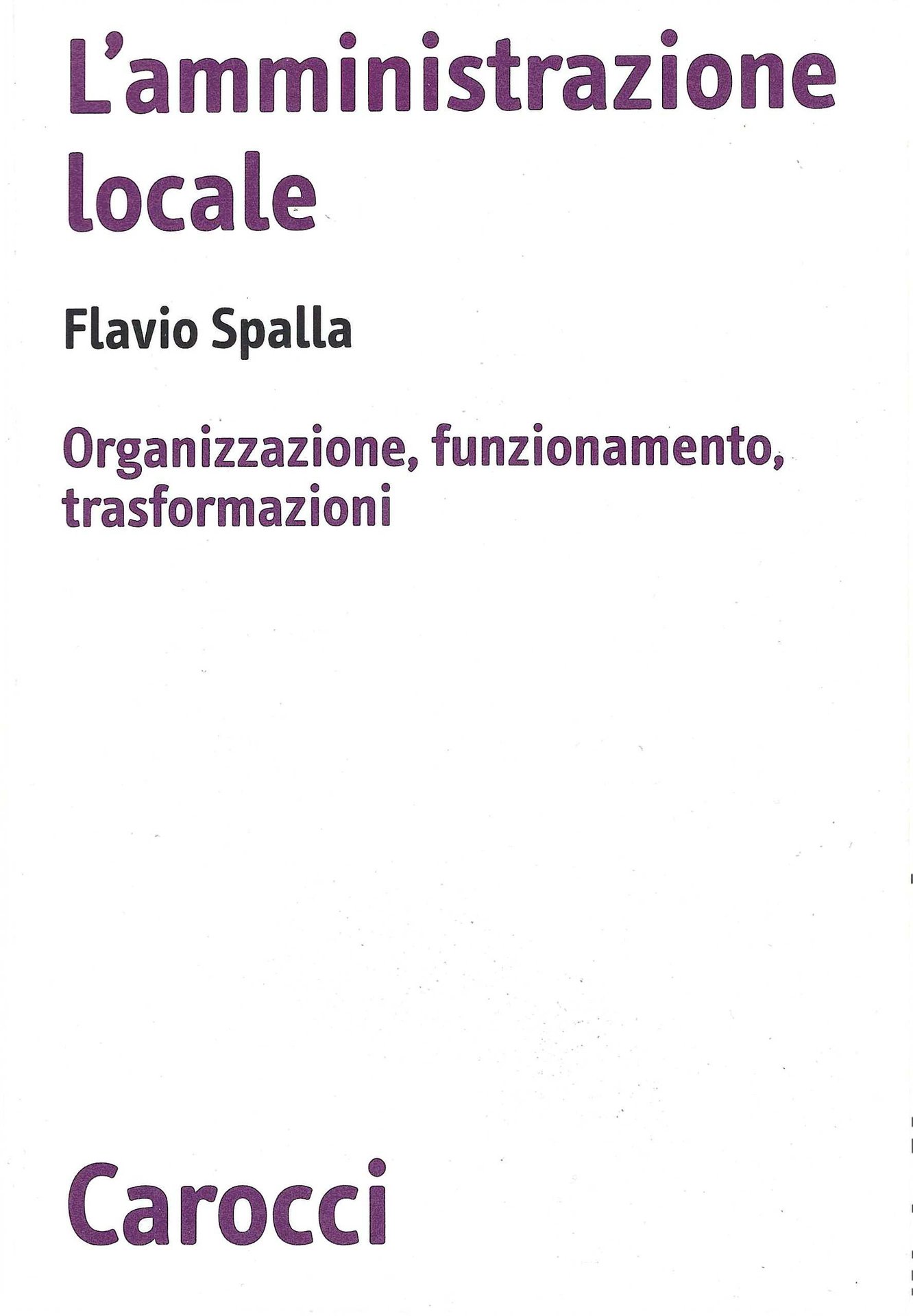 Spalla Flavio, L'amministrazione locale. Organizzazione, funzionamento, trasformazioni, Carocci, 2000.In-8 (Cm 21,9x15), pp. 244, brossura edit. Collana Biblioteca di testi e studi 148. Studi politici. Minimi segni d'uso, OTTIMO