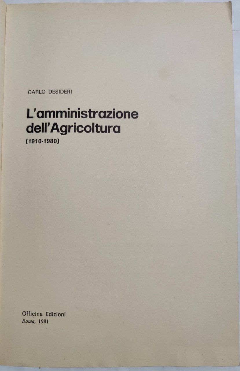 L'Amministrazione nell'agricoltura ( 1910 - 1980 )