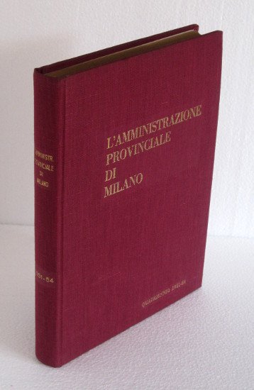 In 4to (cm29x21,5) legatura in tela, pag. XV-320 con numerose foto in b/n a piena pagina e 2 tav, a colori applicate. - Attività del Consiglio Provinciale. In appendice: lavori eseguiti con i costi, statistiche, contributi agli enti.