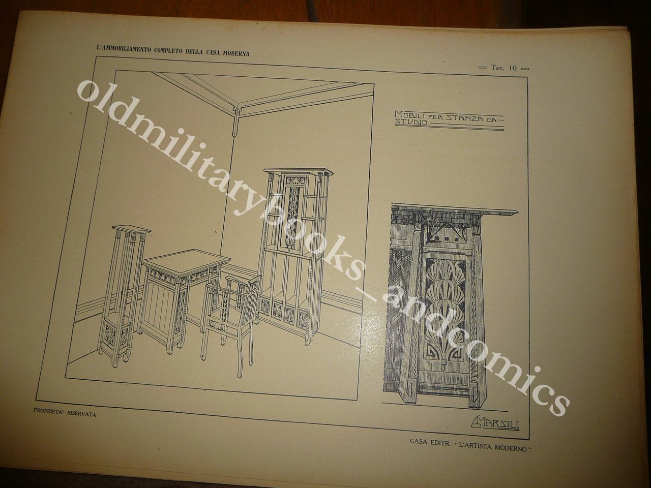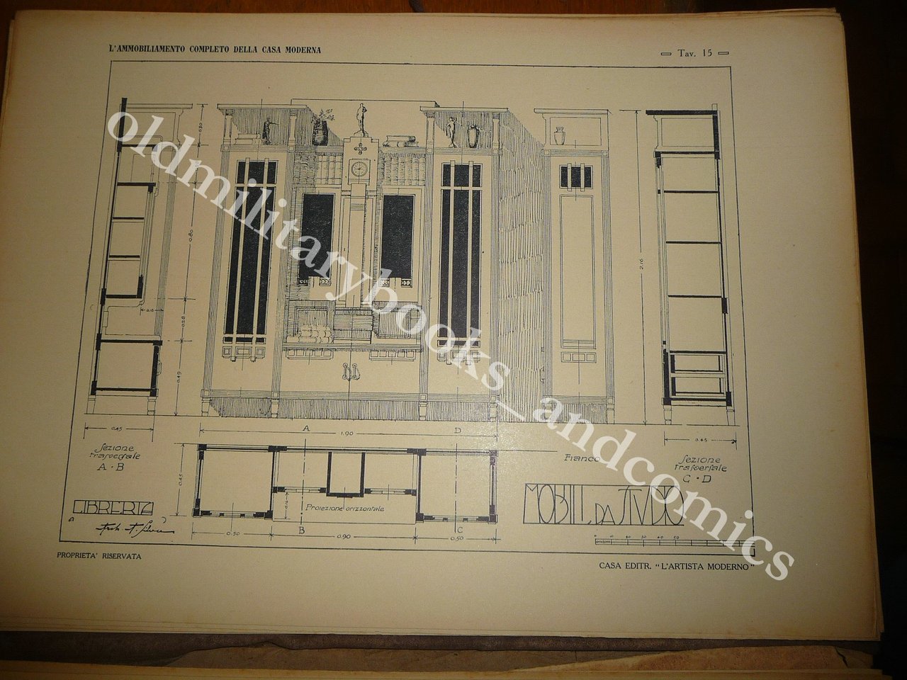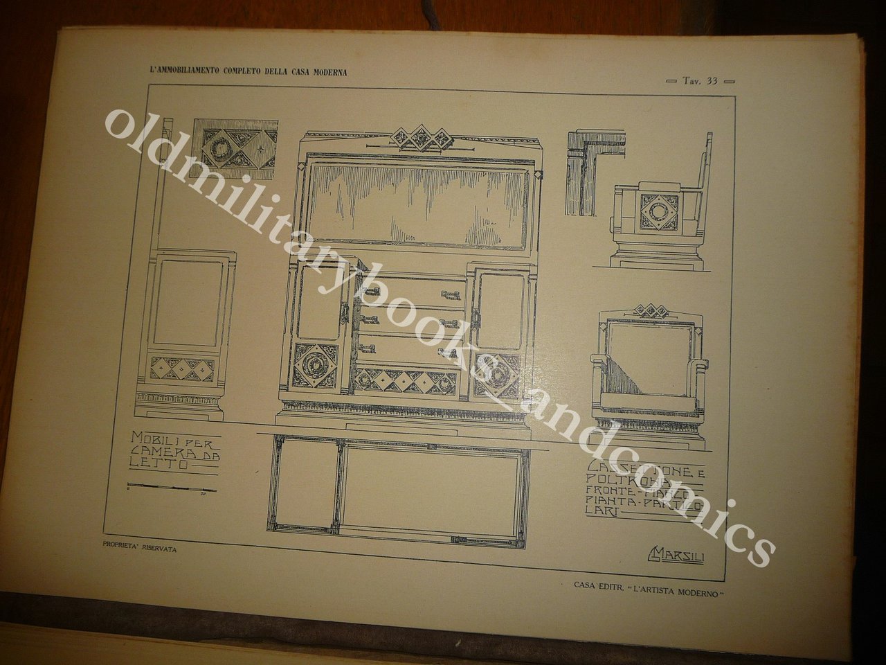 TITOLO: L'AMMOBILIAMENTO COMPLETO DELLA CASA MODERNA Ambienti originali completi in prospettiva e mobili isolati in iscala con sezioni e quotazioni epressamente eseguiti da artisti. 1^ serie.