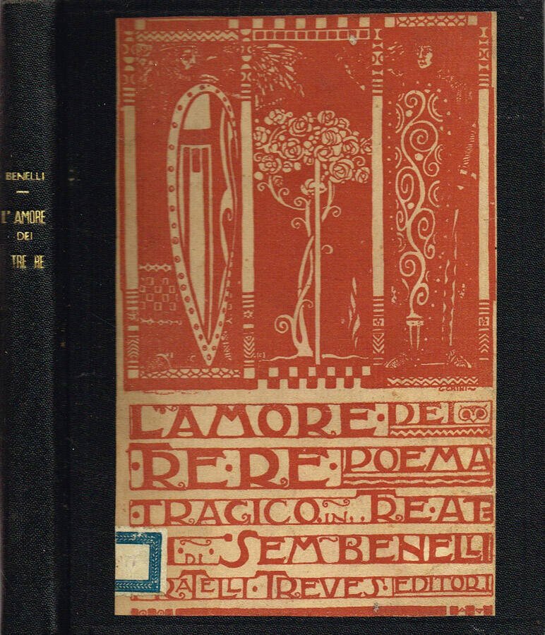 Volume della seconda decade del '900 in 16.o, stato discreto, rilegato con coperta in tessuto, caratteri dorati in bassorilievo sul dorso, su piatto anteriore il rilegatore ha fissato il piatto anteriore originale del volume, illustrato, in cartoncino, illustrazione di G. Chini, etichetta in carta e timbro d'appartenenza su piatto anteriore, qualche segno del tempo, lievi bruniture, tracce di fioritura sparsa, tagli appena ambrati, legatura poco allentata, pagine in buono stato, prime e ultime lievemente ambrate, timbro d'appartenenza su occhietto e frontespizio. Una illustrazione in nero di G. Chini, elegante finalino in nero. Fa parte della collana Biblioteca teatrale Italiana e straniera - Teatro Italiano Contemporaneo. 6.a impressione (17.o e 18.o migliaio). Numero Pagine 117