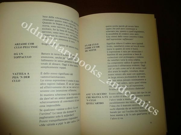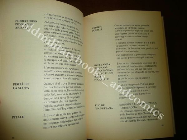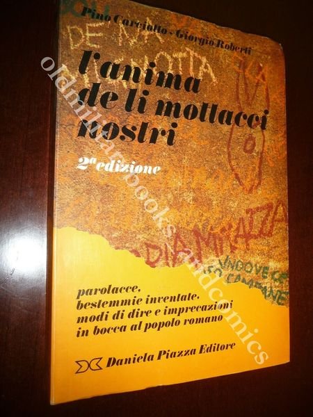 TITOLO: L'ANIMA DE LI MOTTACCI NOSTRI PAROLACCE, BESTEMMIE INVENTATE, MODI DI DIRE E IMPRECAZIONI IN BOCCA AL POPOLO ROMANO DESCRIZIONE: Daniela Piazza Ed. Torino 1982, br. ed. ill. col. con alette, pp. 189 alcune ill. b/n n.t. in 8°. Seconda edizione. CONDIZIONI: Ottime. PESO / WEIGHT: 400 gr. without package