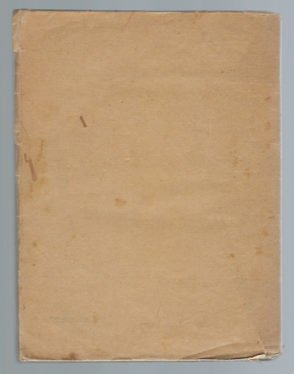 Sovraccoperta artigianale usurata, con strappi e macchie.