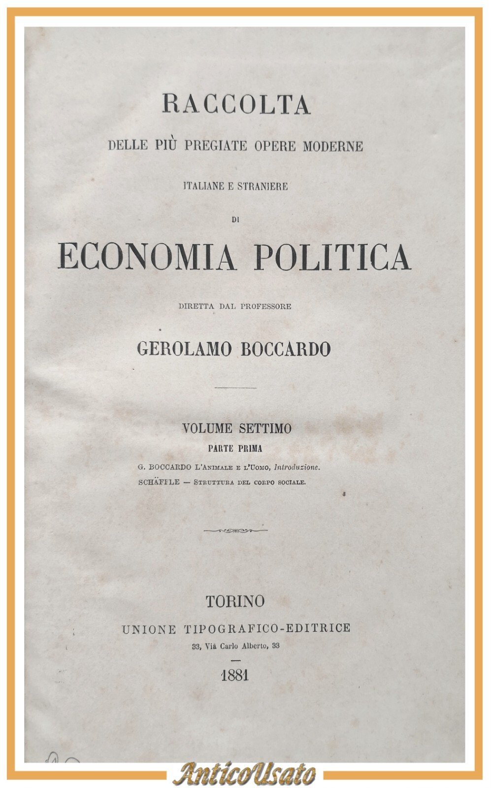 Unione Tipografico-Editrice, 1881. Collana Biblioteca dell'economista