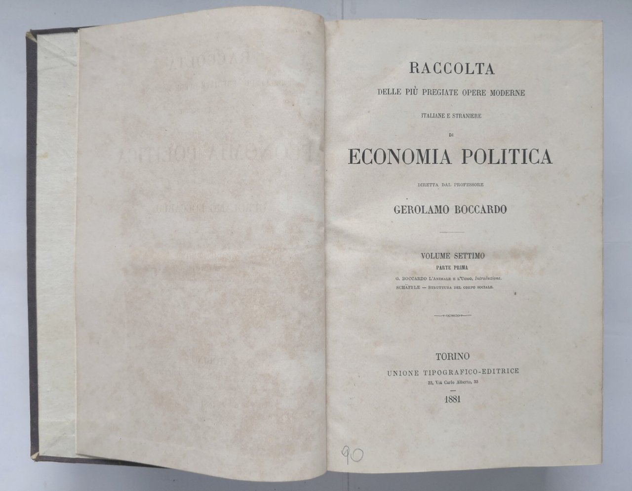 Raccolta delle più pregiate opere moderne Italiane e Straniere di ECONOMIA POLITICA di Gerolamo Boccardo. Serie Terza, Volume VII, parte prima.