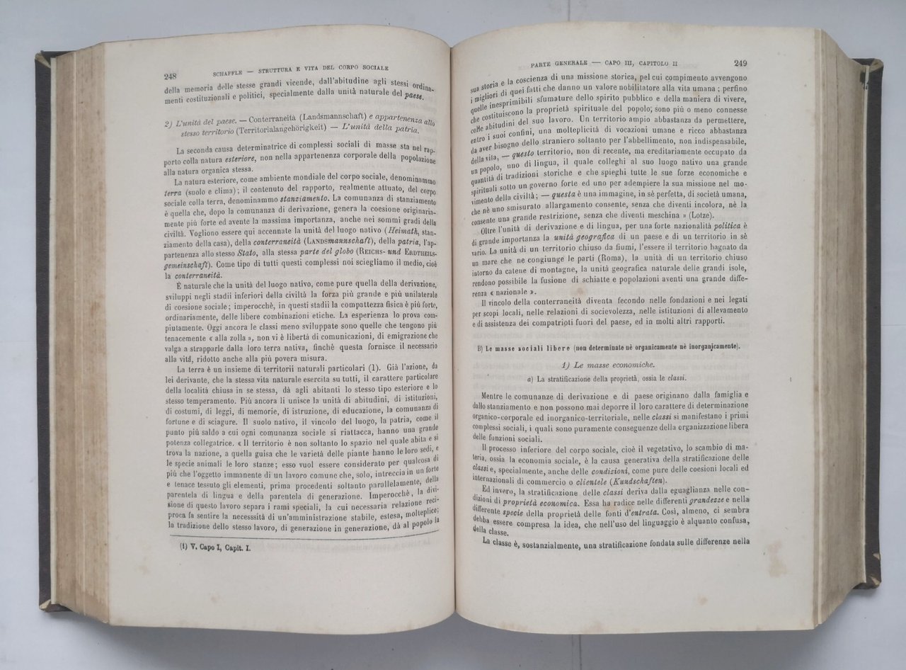 STRUTTURA E VITA DEL CORPO SOCIALE saggio enciclopedico di una reale anatomia, fisiologia e psicologia della società umana con speciale riferimento all'economia sociale come scambio sociale di materia di Alberto Schaffle.